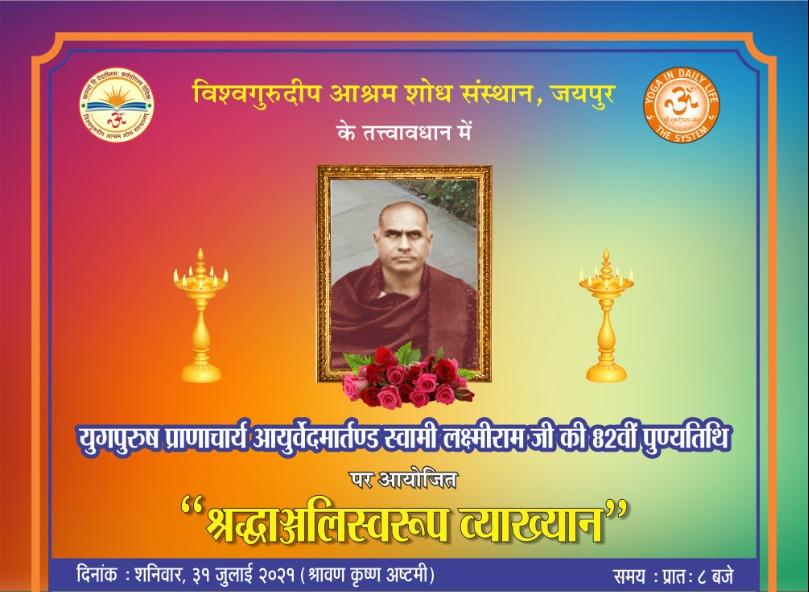 युगपुरूष प्राणाचार्य आयुर्वेदमार्तण्ड वैद्य स्वामी लक्ष्मीराम जी महाराज की 82वीं पुण्यतिथि 31-7-2021 को मनायी गयी।
