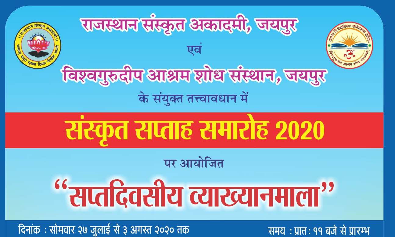 विश्वगुरु दीप आश्रम अनुसंधान केंद्र एवं राजस्थान संस्कृत अकादमी, जयपुर विश्वसंस्कृत दिवस के अवसर पर 7 दिनों के व्याख्यान का आयोजन किया - 27. जुलाई - 3. अगस्त 2020।